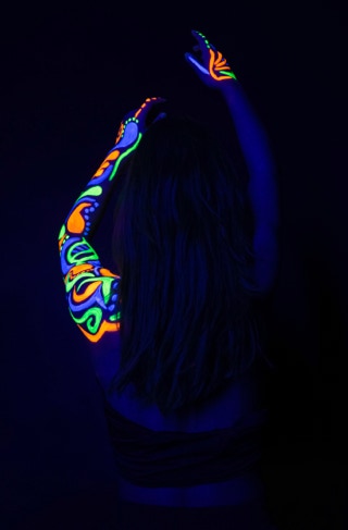 ‘Illuminate The Dark’ is a photography project in collaboration with a makeup artist and a model. We have worked with uv paint and blacklights.