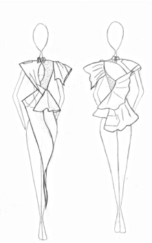 “Upcycling” is a project about recycling denim jeans and creating a more fancy look. I took several jeans apart and with those parts I created moulages. For me a denim jeans is quite basic, but I wanted to create something extraordinary. That’s why I added parts of a sequin top in my design. I also think that femininity is quite important in my designs. Therefore I often use quite a lot of excisions.